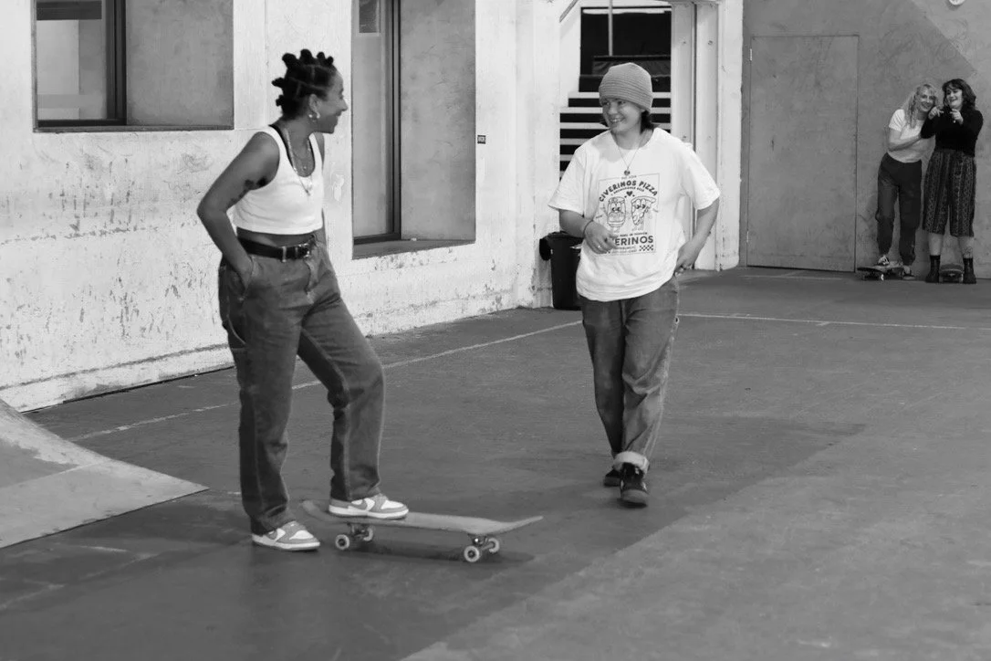 We love getting the community together to celebrate creativity, love and skateboarding. We aim to create inclusive and open safe spaces for everyone. We enjoy hosting a range of events from BBQ’s, art auctions, skate jams, gigs and club nights, nothing is too big or small for us. Since founding skateboobs, we have been blown away with the closeness of the skate community, and we strive to make it a more welcoming space for women, LGBTQIA+, BPOC and non-binary people through hosting fun events open to all.